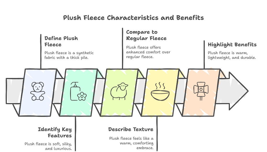 To begin with, let’s first look at the straightforward definition. Plush fleece is the synthetic fabric with a thick and high-pile surface that is usually made of polyester and has the characteristics of being extremely soft, silky, and luxurious. The answer to the question what is plush fleece is quite simple: it is the top-quality fleece imitation of velour, faux fur, or high-loft microfiber, which is still warm, lightweight, and durable at the same time.