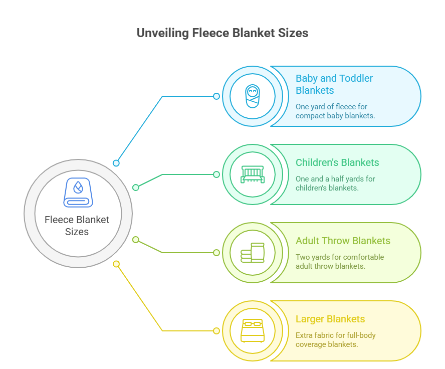 The key thing to remember is that fleece usually comes in wide rolls. That width already takes care of most blanket widths, so the amount of fabric you need is mostly about length.