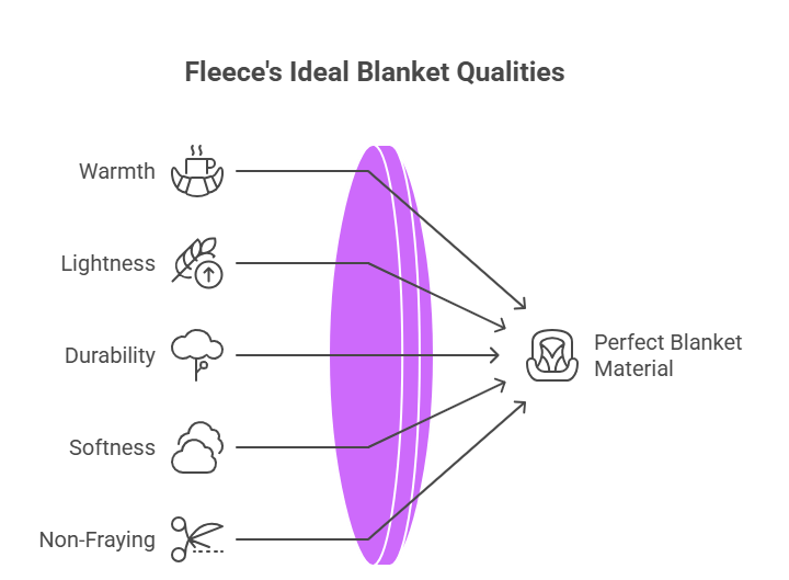 Fleece is a fabric made out of polyester that is warm, light and durable and has a soft texture. Among contributing factors to the popularity of fleece as a raw material for DIY blankets, one of the major ones is its non-fraying property. This means that the edges do not break apart when cut, which makes fleece perfect not only for no-sew techniques but also for very simple sewing methods along with that.
