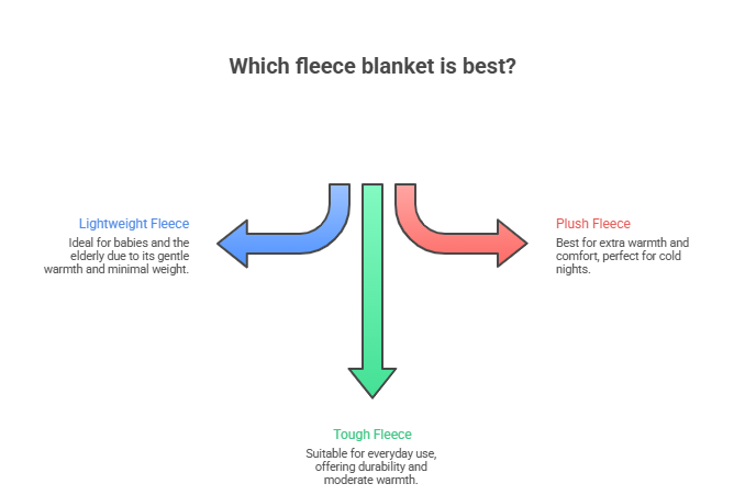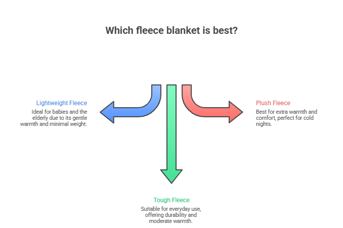 The “best” fleece blanket would surely rely on age, setting, and personal sense of comfort. Lightweight fleece would be ideal for babies and the elderly, tough fleece for every day, and plush, extra warm fleece when needed.