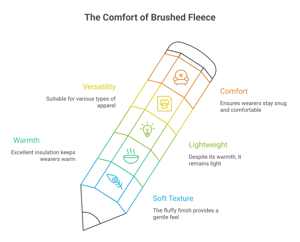 - Knitting and looping: The fibers are looped to create a thick, bouncy pile structure that traps air, enhancing insulation.