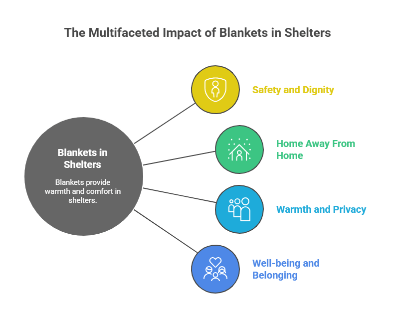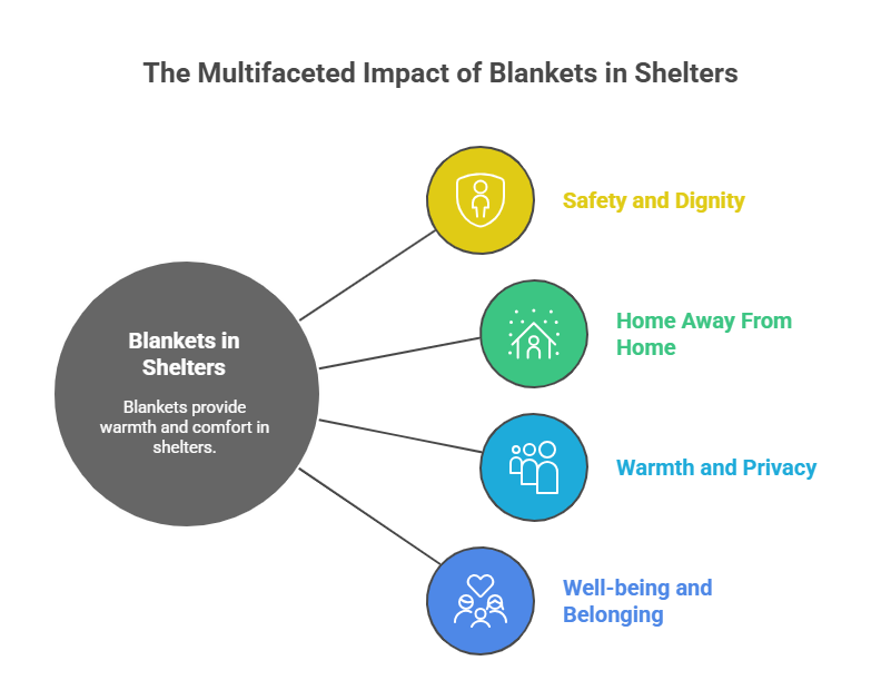 Shelters for women and families often accept donated blankets. These environments mainly concern the re-establishment of safety and genuinely dignified homes, while blankets tend to fill in the ambience with a lesser shadow but prove to be very important in communal manners. They cover the beds, couches, sofas, and open living rooms to press “home away from home” effect.